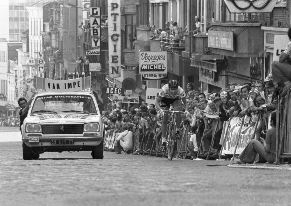 Tour de France 1975 : Prologue Charleroi avec Van Impe en plein effort.